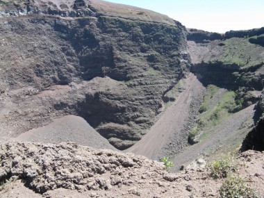 Kurzerhand entschieden wir unterwegs bereits heute den Vesuv zu besuchen. Am Ende der Strasse unter dem Gipfel erwartete uns allerdings das grösste Verkehrschaos der Menschheitsgeschichte. Unzählige Busse und Grossraumtaxis hatten die gleiche Idee und so fuhren wir wieder ein Stück runter, um parkieren zu können und marschierten den Rest zu Fuss wieder hoch. Von dort gings dann immer weiter hoch bis auf den Kraterrand, auf welchem man wunderbaren einen Blick in und um den Vulkan hat.